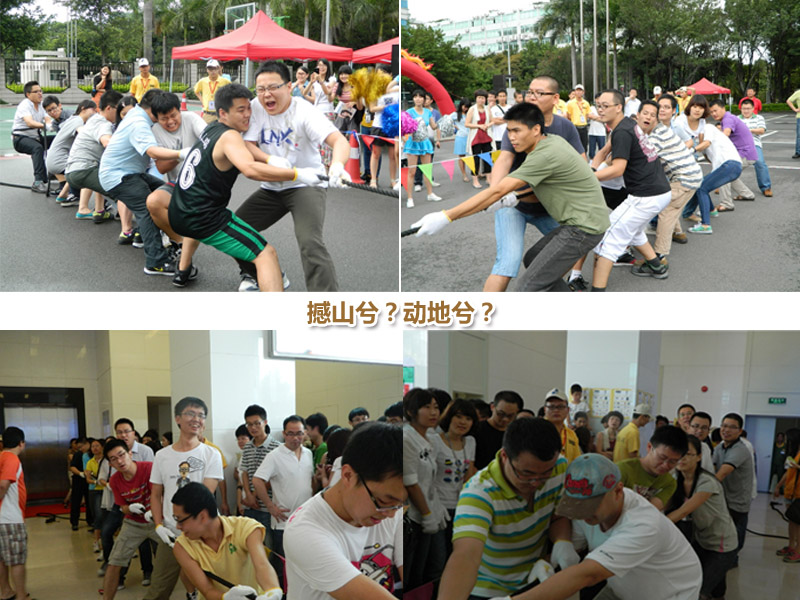 丰盛的自助午餐之后,拔河比赛在大家的欢呼声中拉开了对决。每个部门都派出了最为精英的阵容,提前研究了对阵策略,更组建了强大的啦啦队为比赛助威。加油欢呼的浪潮一波高过一波,员工们的热情丝毫不受不请而至的小雨的影响,激情的背后,是大家对深瑞的热爱, 是对“健康生活,快乐工作”文化理念的最好写照。