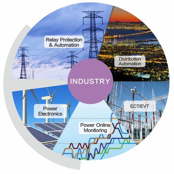 图:5大产业(保护监控、配电自动化、电子式互感器、在线监测、电力电子)