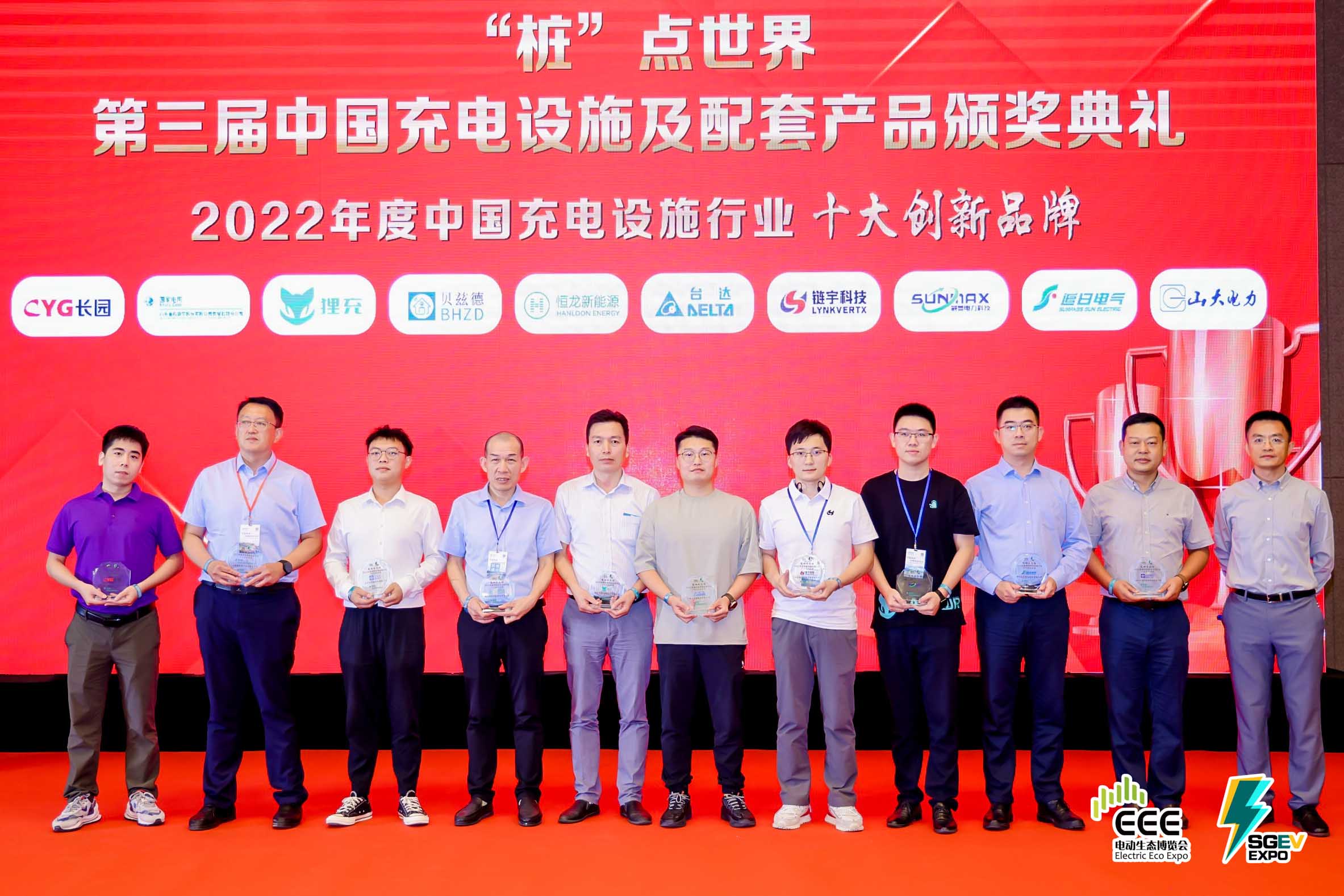 From September 5 to September 7, 2022, the 6th China (Nanjing) International EV Charging Technology Expo was held in Nanjing. It was jointly hosted by State Grid Smart IoV Technology Co., Ltd., the National Automobile Quality Supervision and Inspection Center and the Association of Beijing New Energy Automotives, and CYG SUNRI was invited to participate in the expo with its EV charging products and solutions. During the period of the expo, the "Award Ceremony of 2022 Electric Ecosystem Cup" was held, and CYG SUNRI won the award for "Top 10 Innovative Brands in China's Charging Facilities Industry in 2022".